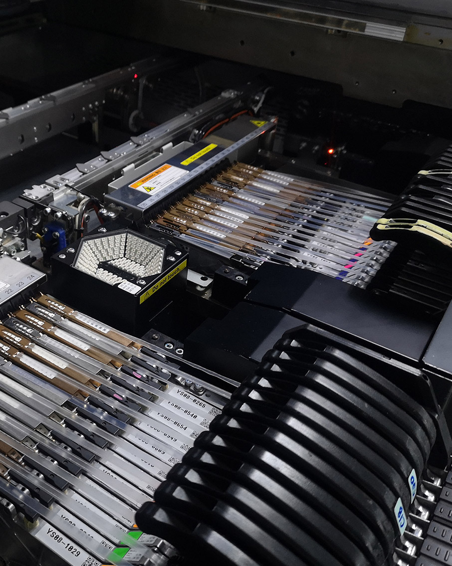 Using multiple high-speed automatic placement machines, we can mount fine-pitch BGA, QFN, 0201 and other tiny packages